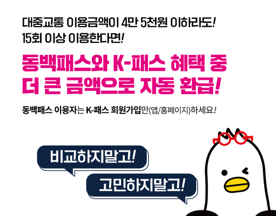 - 동백패스는 K-패스와 연동되어 더 큰 금액이 자동 환급됩니다.