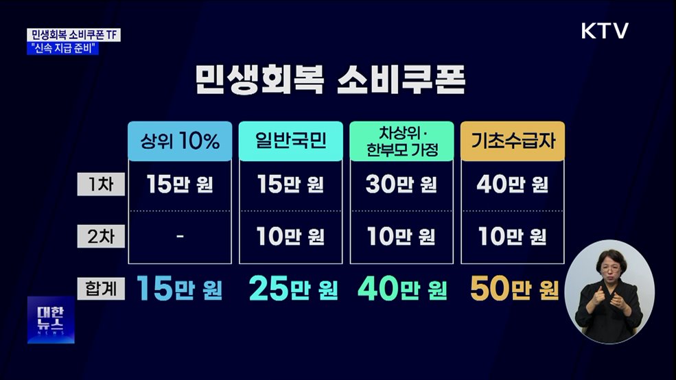 정부는 속도를 높이기 위해 범정부 TF(기획재정부, 행정안전부 등)를 구성하고 지급 기준을 확정 중입니다.