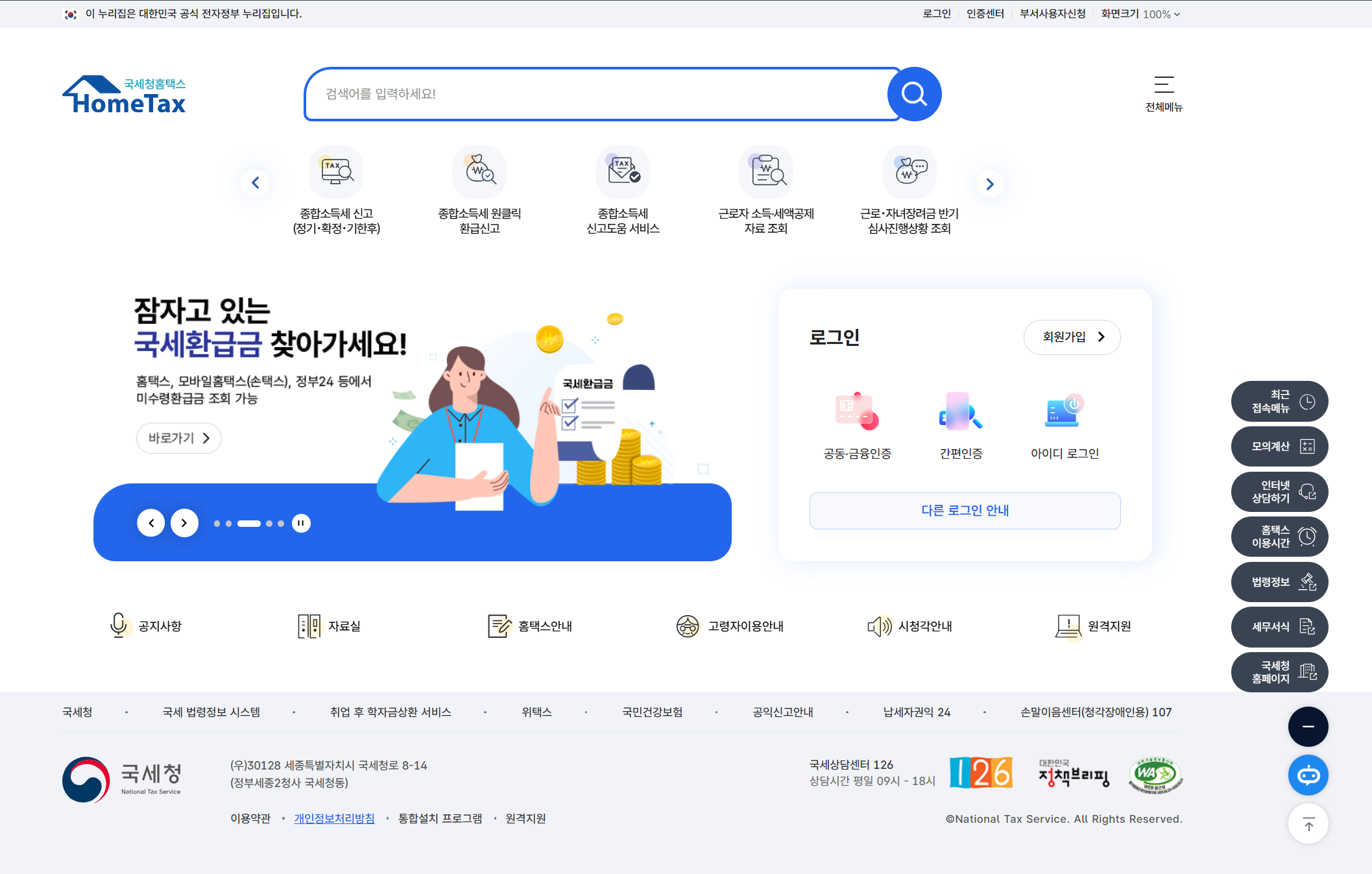 - 홈택스/손택스/정부24로 환급금 조회 가능