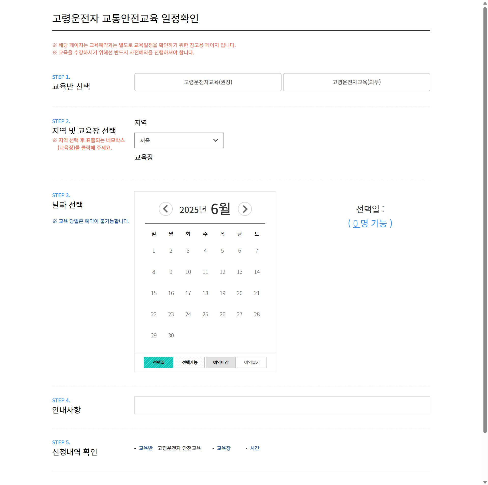 | 2단계 | 교육장 및 날짜 선택 |