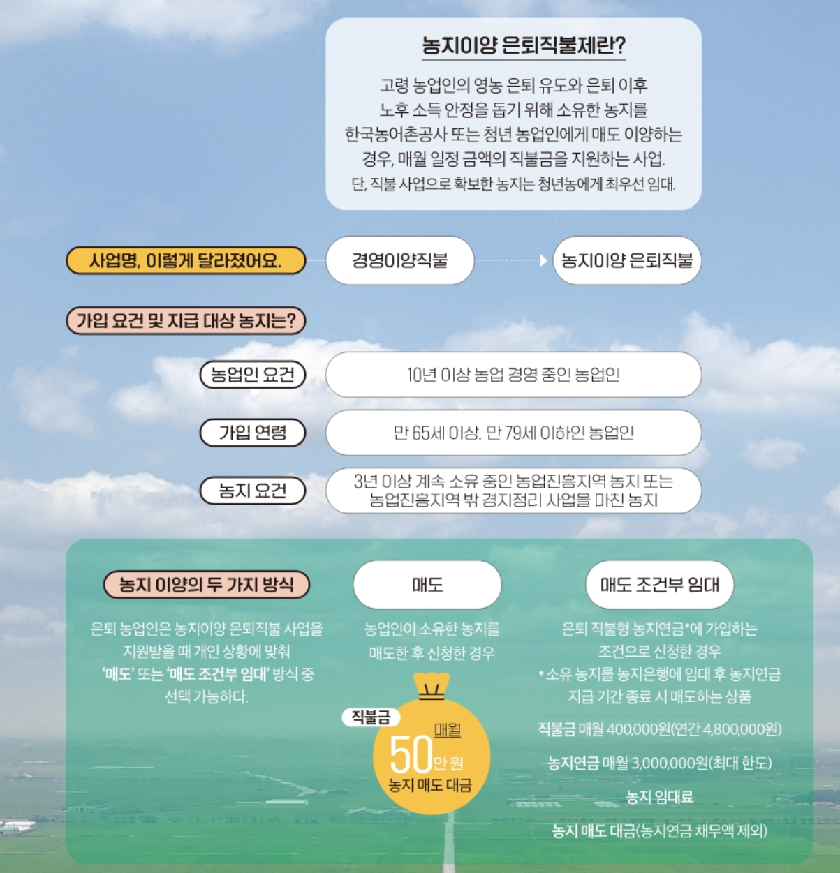 | 신청자격 | 65~79세, 농지 3년 이상 소유 | 동일 |