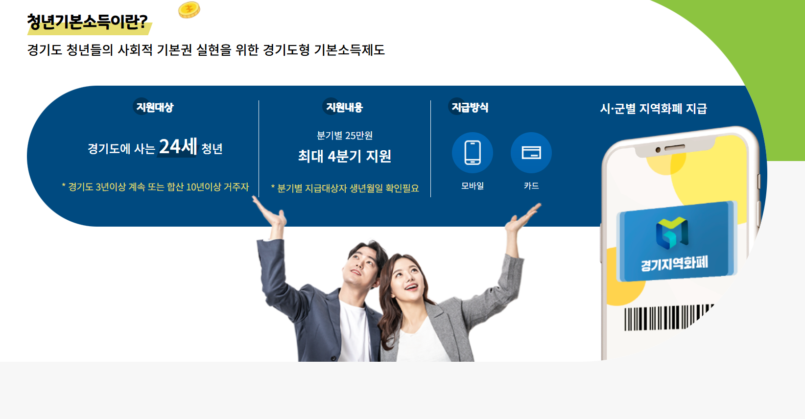 만 24세의 경기도 청년이라면, 연간 최대 100만 원의 지역화폐를 받을 수 있는 절호의 기회입니다.