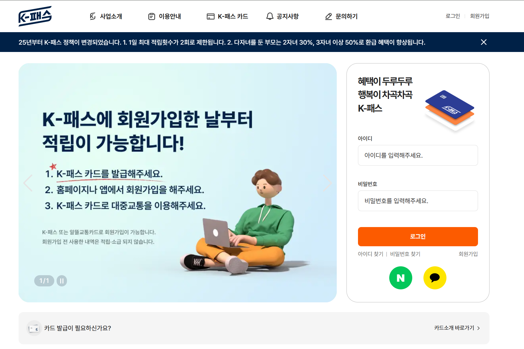 - 회원가입: K-패스 홈페이지 또는 앱에서 회원가입 및 카드 등록